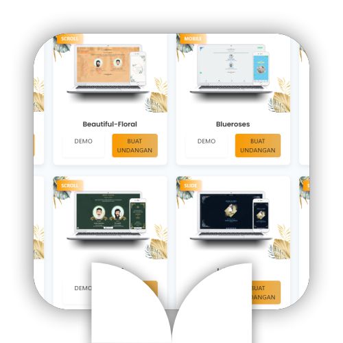 Tersedia berbagai tema undangan seperti modern, klasik, elegan, tradisional, dan masih banyak lagi. Anda bisa memilih sesuai selera.